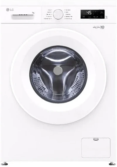 отдельностоящая, стиральная машина, загрузка до 7 кг, отжим 1200 об/мин, глубина 44 см (с люком 50 см), энергопотребление (new) A, прямой привод, 10 программ, 6 Motion (LG)